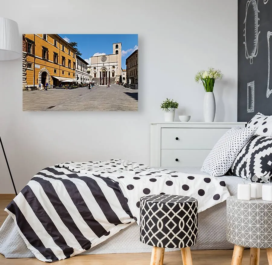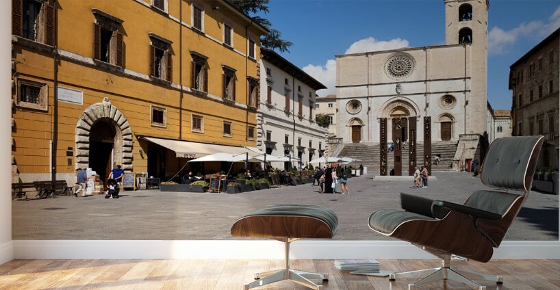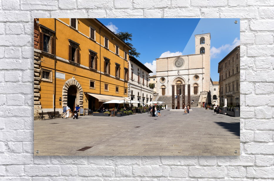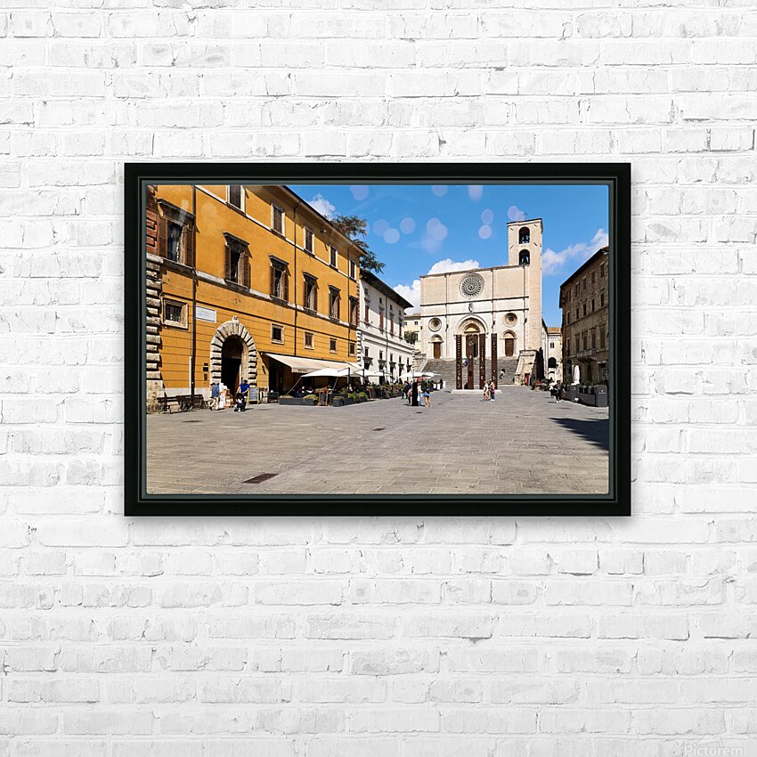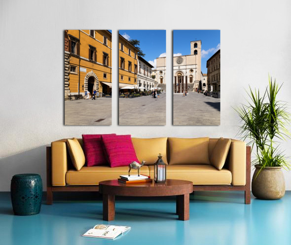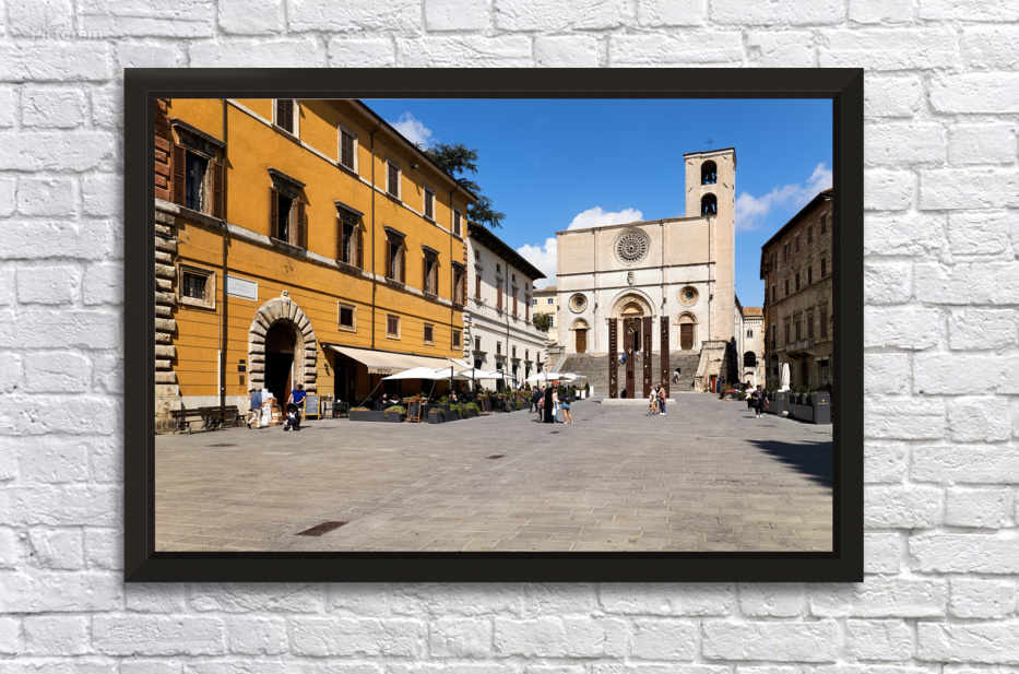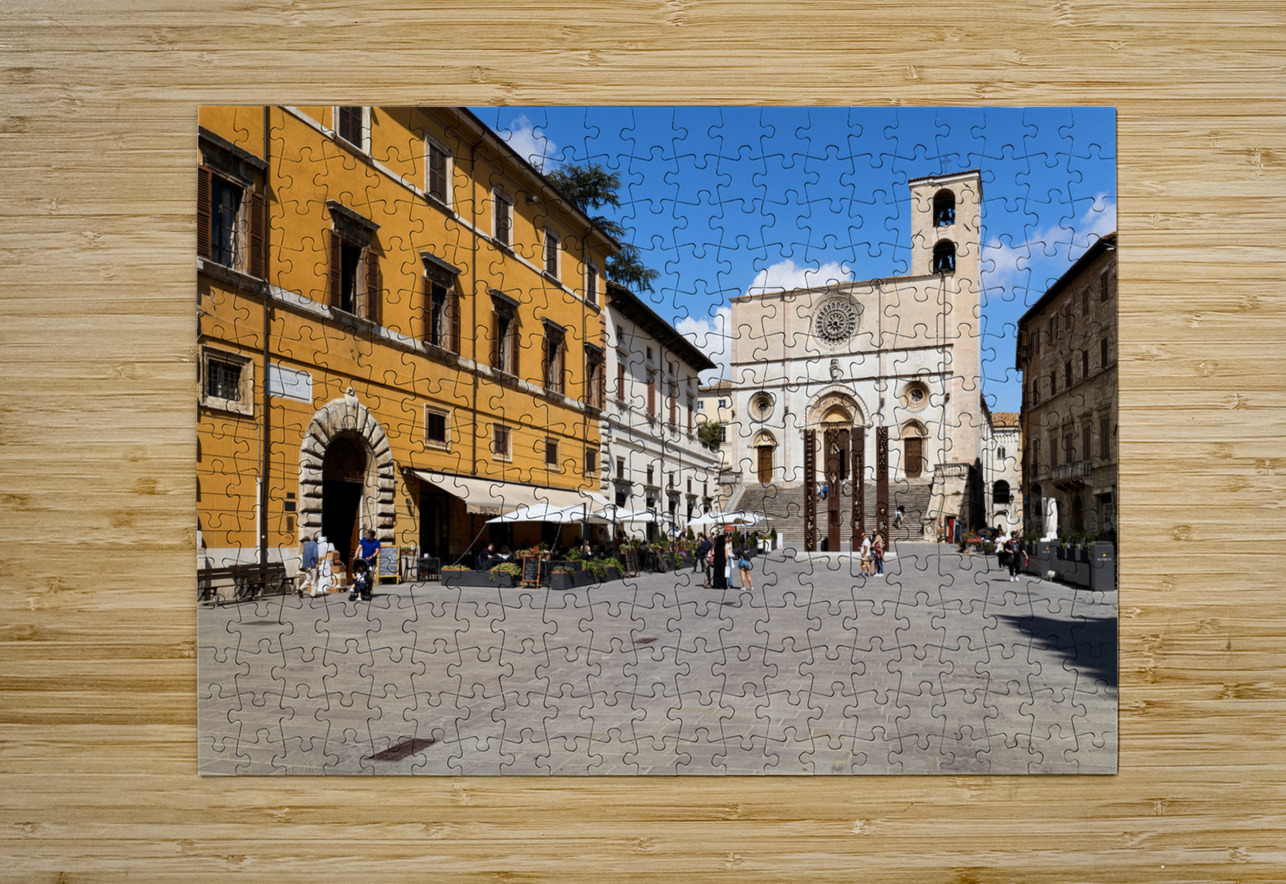 Todi Umbria Italy. Concattedrale della Santissima Annunziata. Cathedral. Piazza del Popolo. The statue Quattro Stele by Arnaldo Pomodoro