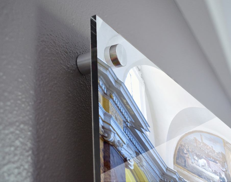 Printed to the edge - Ready to hang - provided with 4 premium polished aluminum stand off ( wall screws and mounting hardware provided )