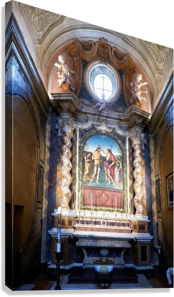 Get this artwork "Città della Pieve Umbria Italy. The Cathedral of San Gervasio e Protasio. The Baptism of Christ by Perugino" in a framed print.