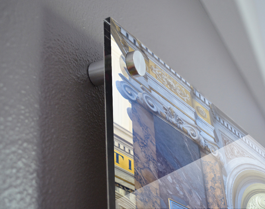 Printed to the edge - Ready to hang - provided with 4 premium polished aluminum stand off ( wall screws and mounting hardware provided )