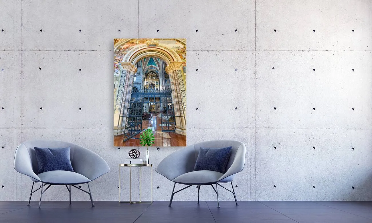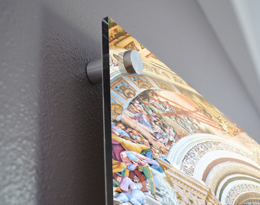 Printed to the edge - Ready to hang - provided with 4 premium polished aluminum stand off ( wall screws and mounting hardware provided )