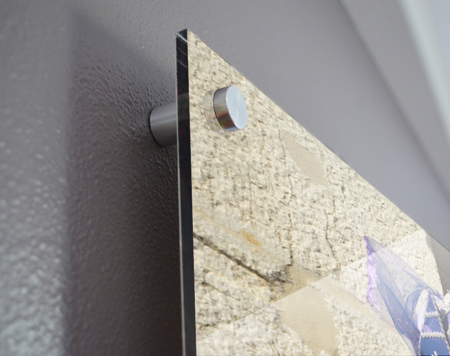 Printed to the edge - Ready to hang - provided with 4 premium polished aluminum stand off ( wall screws and mounting hardware provided )