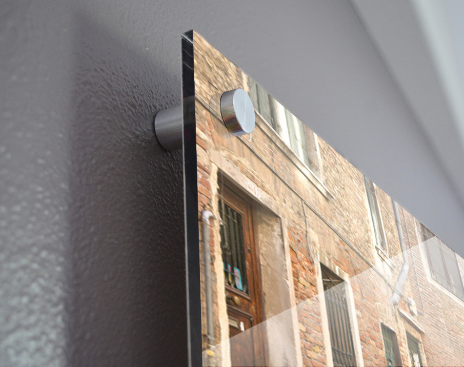 Printed to the edge - Ready to hang - provided with 4 premium polished aluminum stand off ( wall screws and mounting hardware provided )