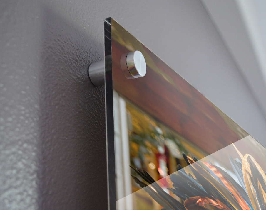 Printed to the edge - Ready to hang - provided with 4 premium polished aluminum stand off ( wall screws and mounting hardware provided )