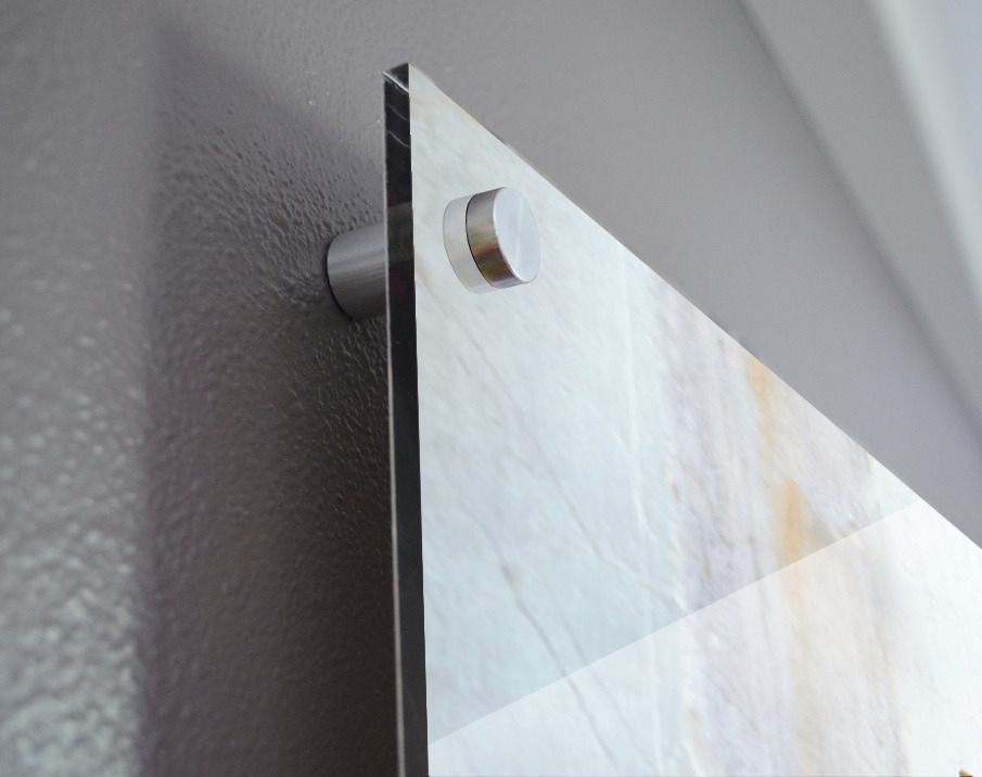 Printed to the edge - Ready to hang - provided with 4 premium polished aluminum stand off ( wall screws and mounting hardware provided )