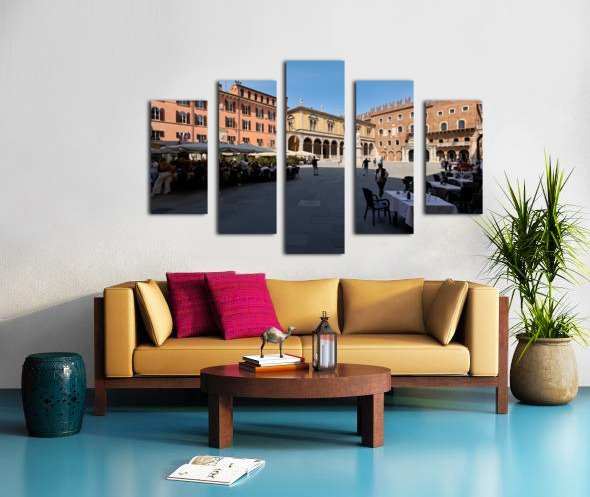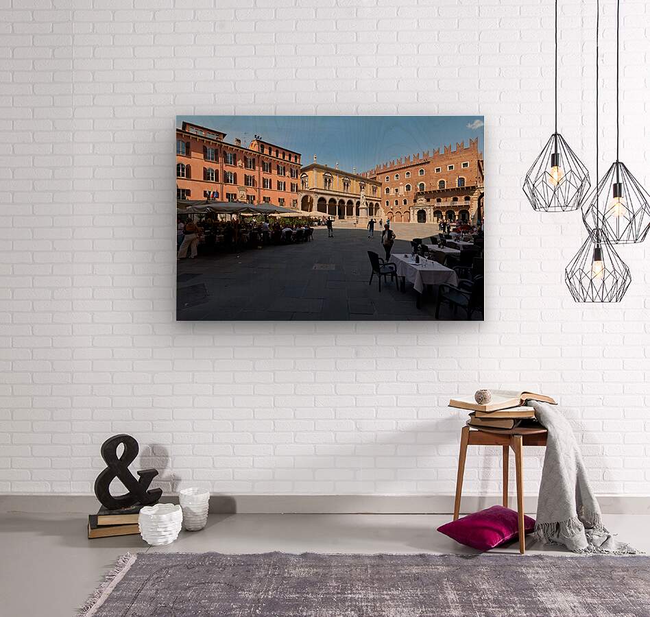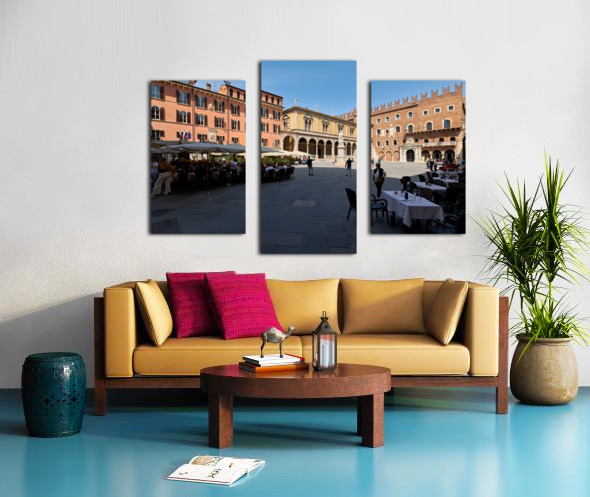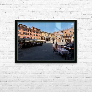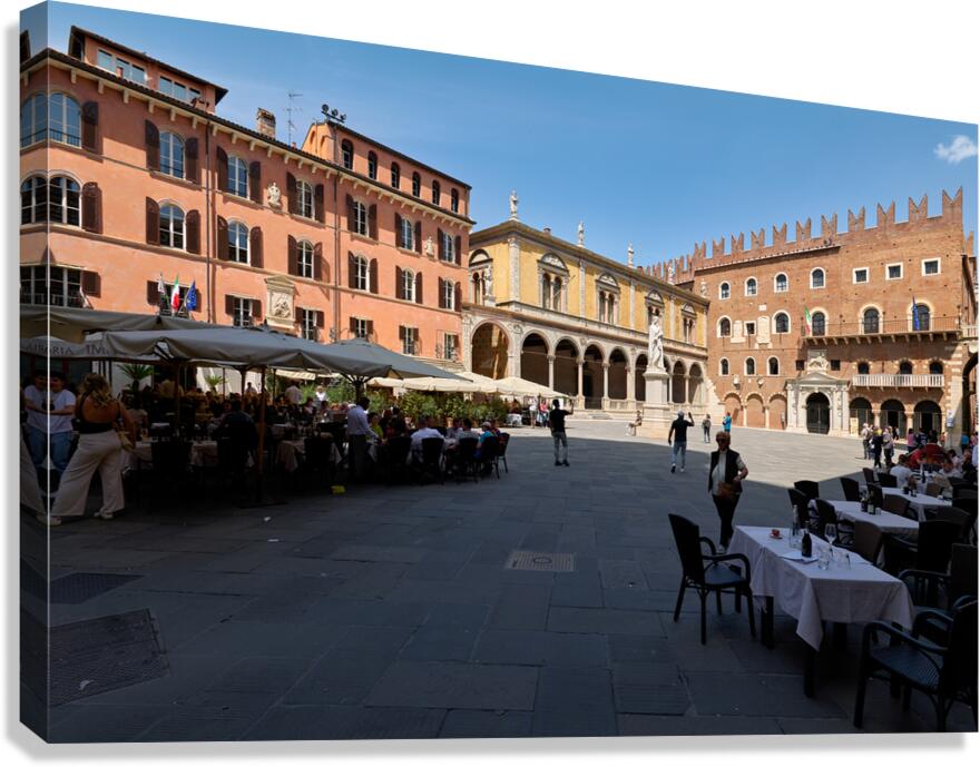 Get this artwork "Verona Veneto Italy. Piazza dei Signori with the monument to Dante and restaurants to dine out" in a framed print.