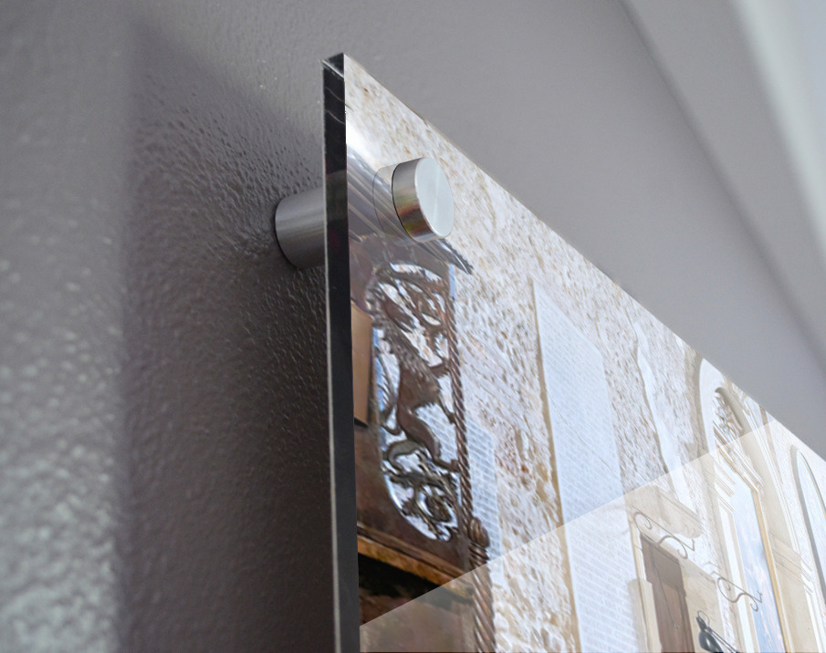 Printed to the edge - Ready to hang - provided with 4 premium polished aluminum stand off ( wall screws and mounting hardware provided )