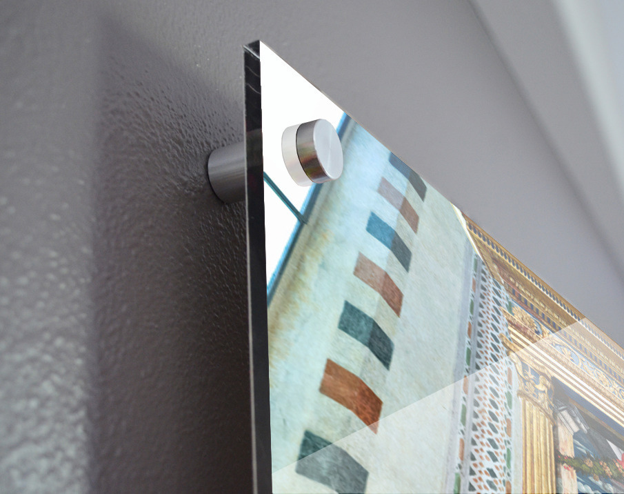 Printed to the edge - Ready to hang - provided with 4 premium polished aluminum stand off ( wall screws and mounting hardware provided )
