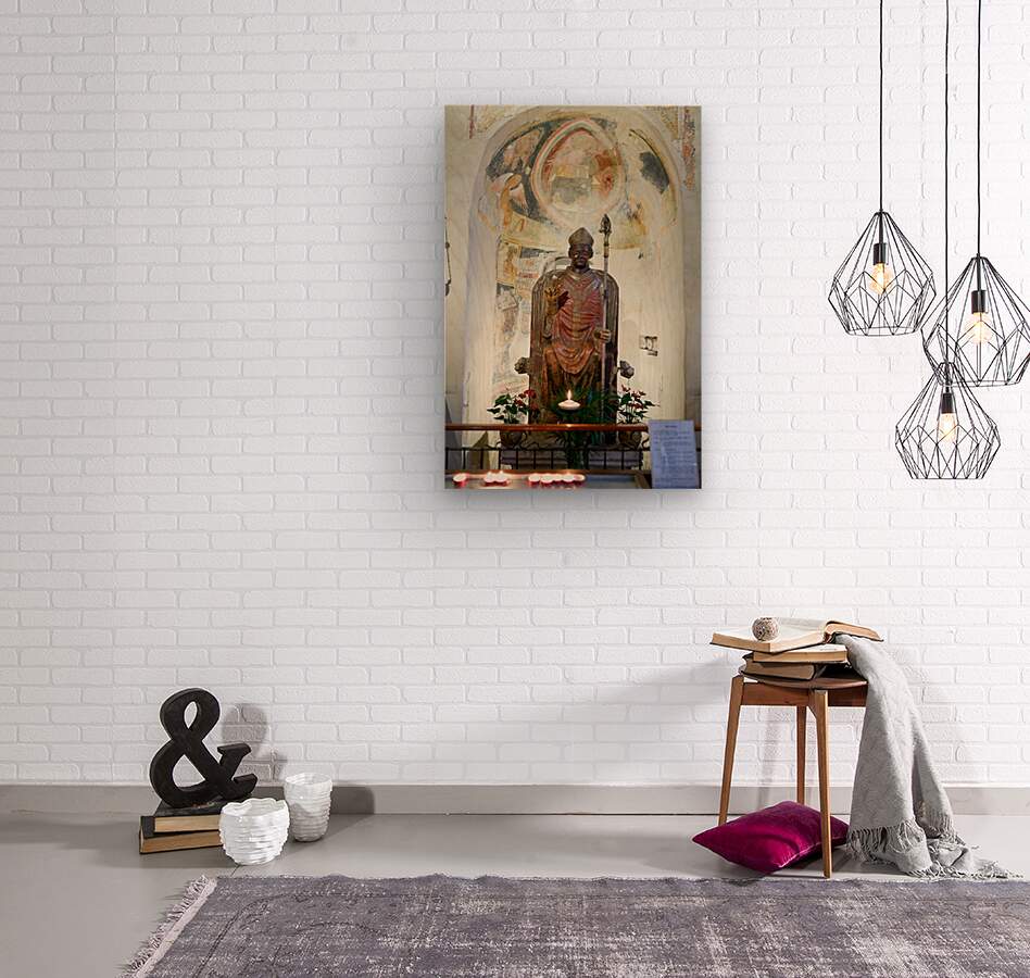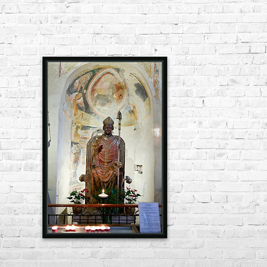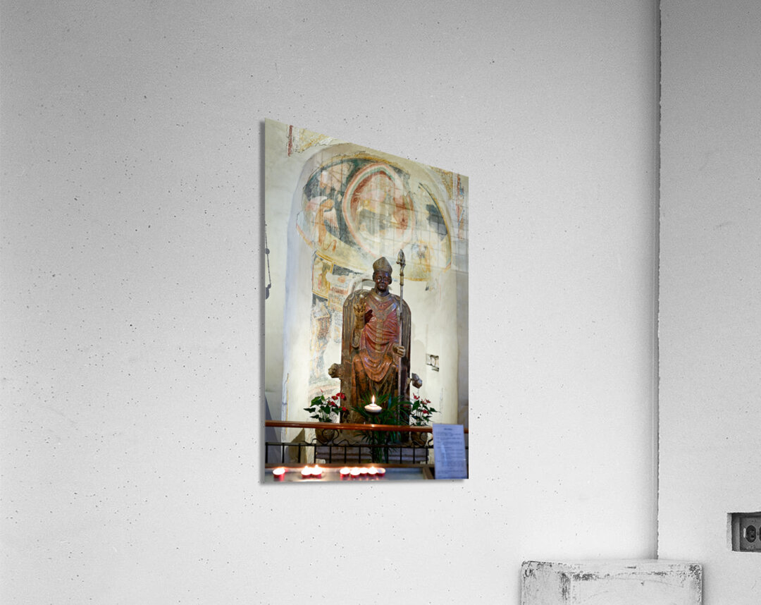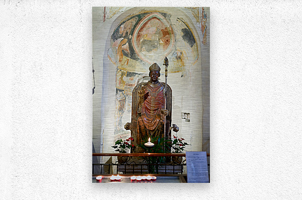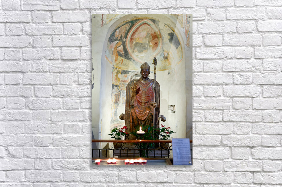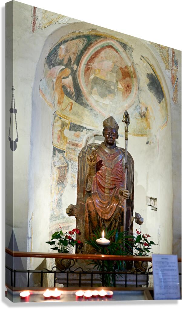 Get this artwork "Verona Veneto Italy. The Basilica of San Zeno. The statue of smiling San Zeno" in a framed print.