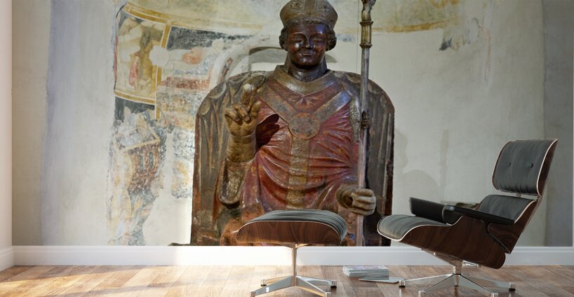 ABOUT THIS ARTWORK: VERONA VENETO ITALY. THE BASILICA OF SAN ZENO. THE STATUE OF SMILING SAN ZENO