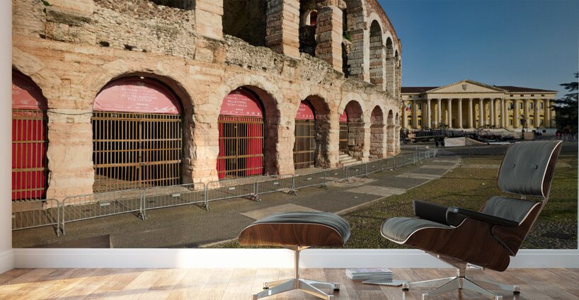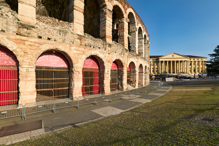 Verona Veneto Italy. The Verona Arena - Roman Amphitheatre and the Town Hall