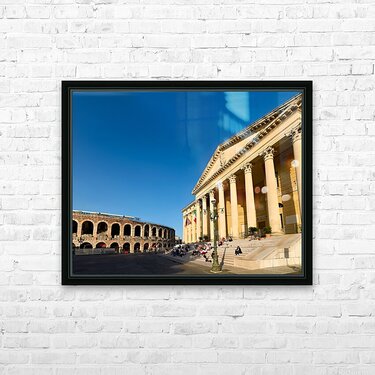 Verona Veneto Italy. The Verona Arena - Roman Amphitheatre and the Town Hall Picture Frame Printing