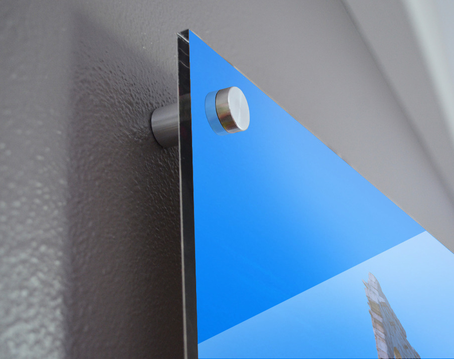 Printed to the edge - Ready to hang - provided with 4 premium polished aluminum stand off ( wall screws and mounting hardware provided )