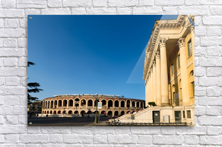 Get this artwork "Verona Veneto Italy. The Verona Arena - Roman Amphitheatre and the Town Hall" in a framed print.