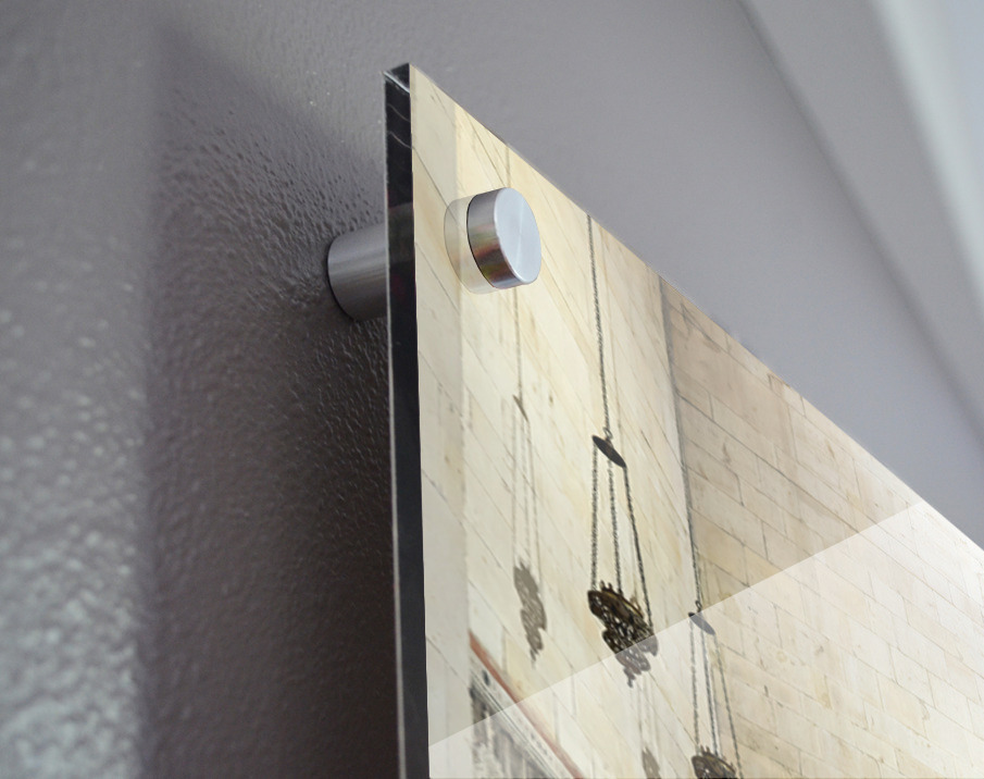 Printed to the edge - Ready to hang - provided with 4 premium polished aluminum stand off ( wall screws and mounting hardware provided )