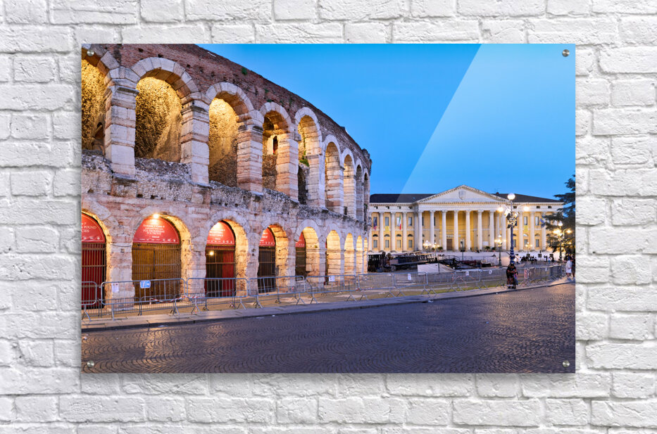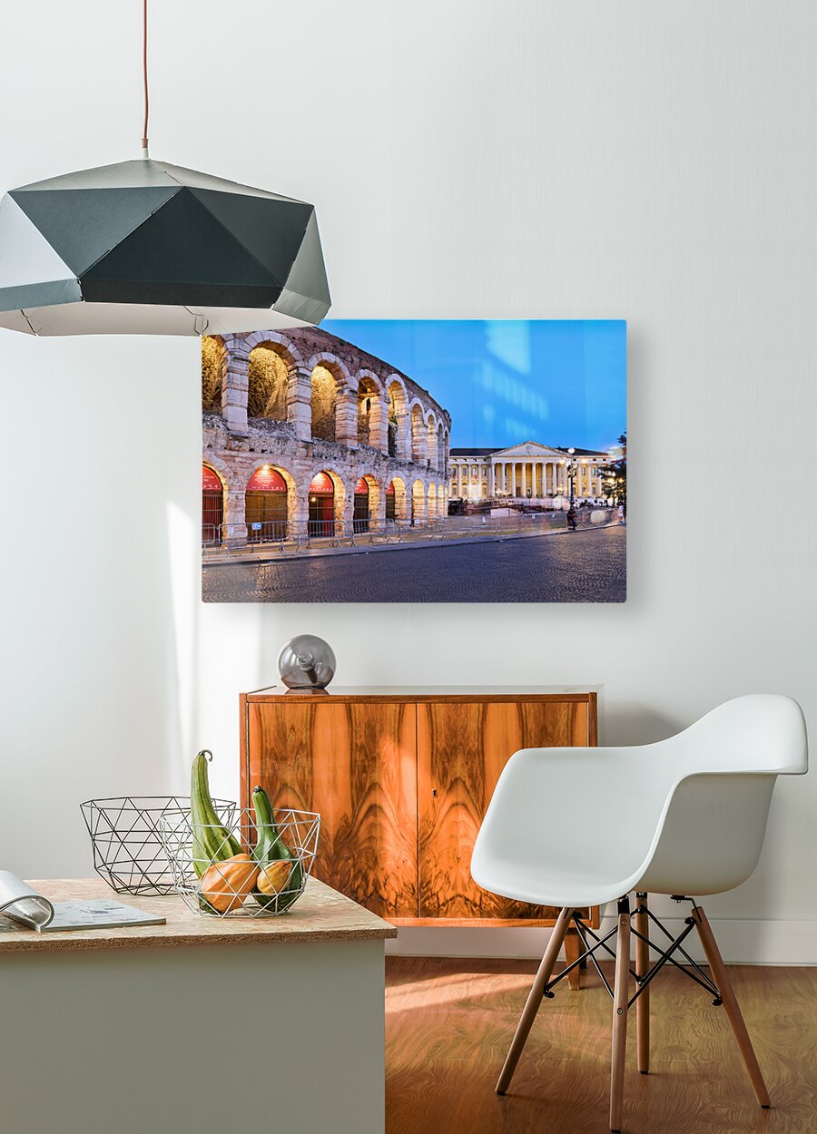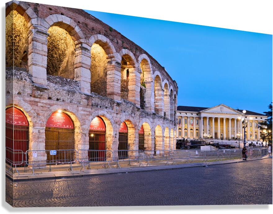 Get this artwork "Verona Veneto Italy. The Verona Arena - Roman Amphitheatre and the Town Hall" in a framed print.