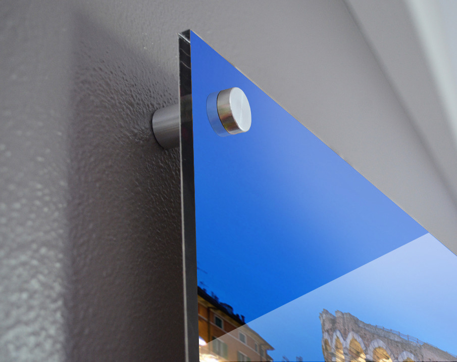 Printed to the edge - Ready to hang - provided with 4 premium polished aluminum stand off ( wall screws and mounting hardware provided )