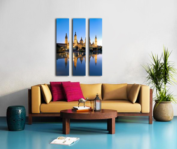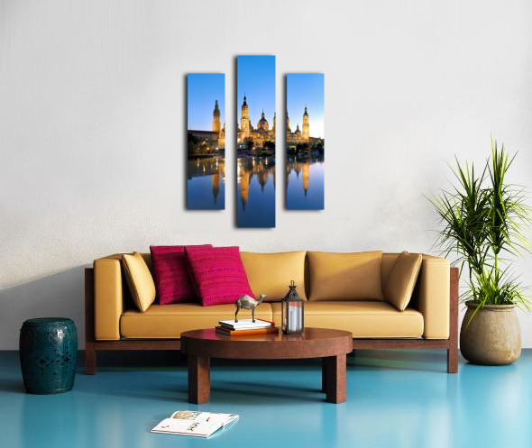 Zaragoza. Saragossa. Aragon. Spain. Cathedral Basilica of Our Lady of the Pillar and river Ebro at sunset Canvas print