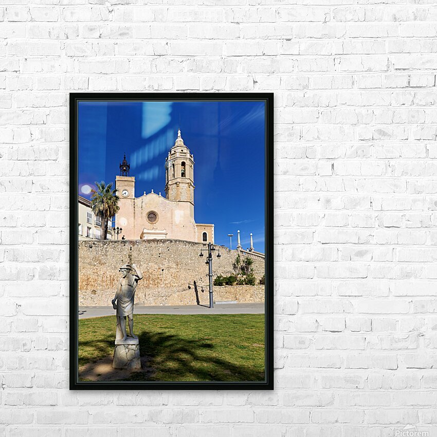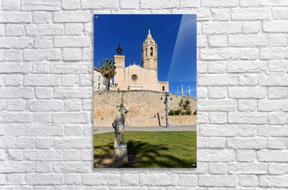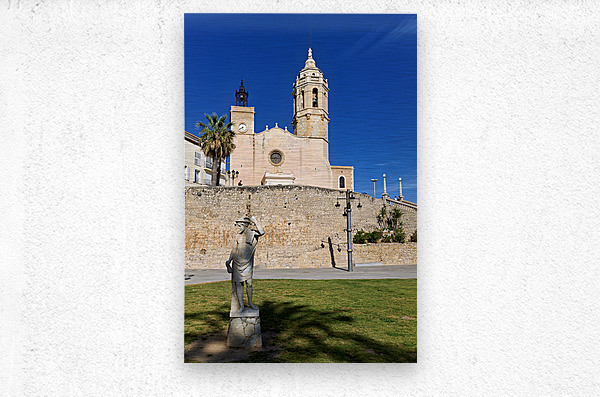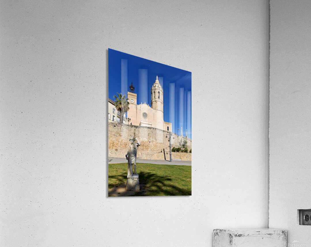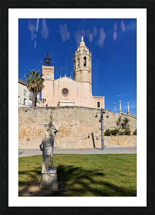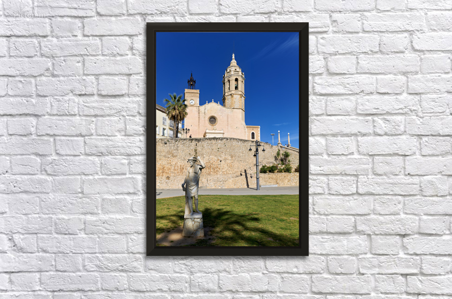 "Sitges Catalunya Spain. Church esglesia de Sant Bartomeu i Santa Tecla" in a framed print.