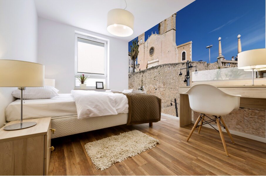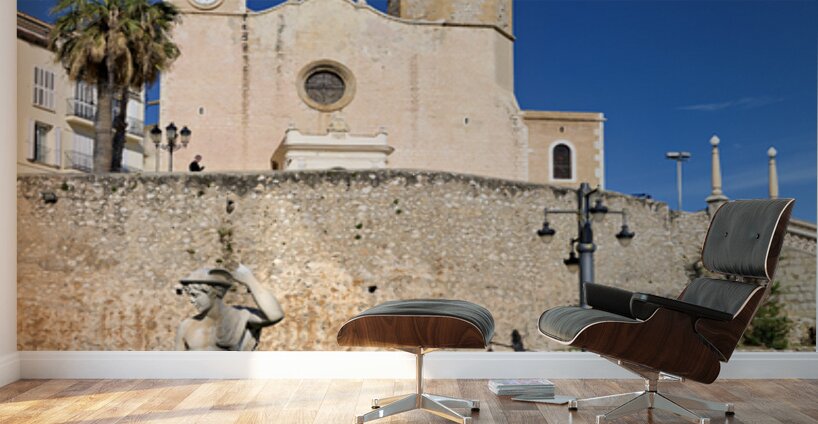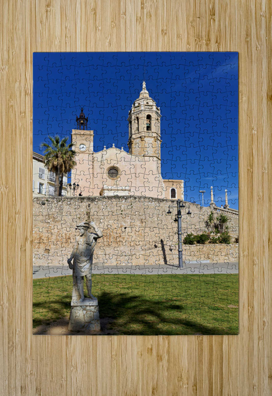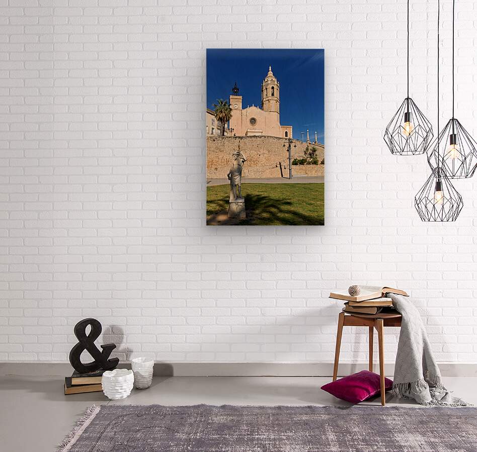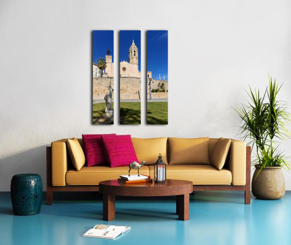 "Sitges Catalunya Spain. Church esglesia de Sant Bartomeu i Santa Tecla" in a framed print.