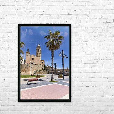Sitges Catalunya Spain. Church esglesia de Sant Bartomeu i Santa Tecla Picture Frame Printing