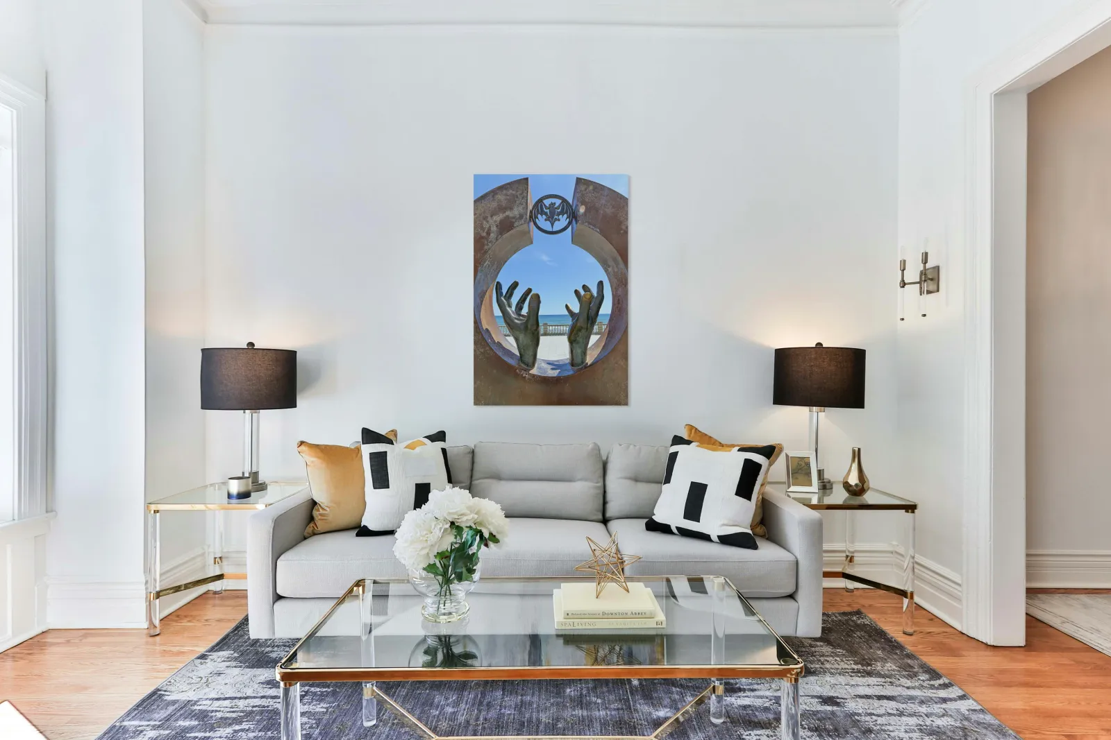 Printed to the edge - Ready to hang - provided with 4 premium polished aluminum stand off ( wall screws and mounting hardware provided )