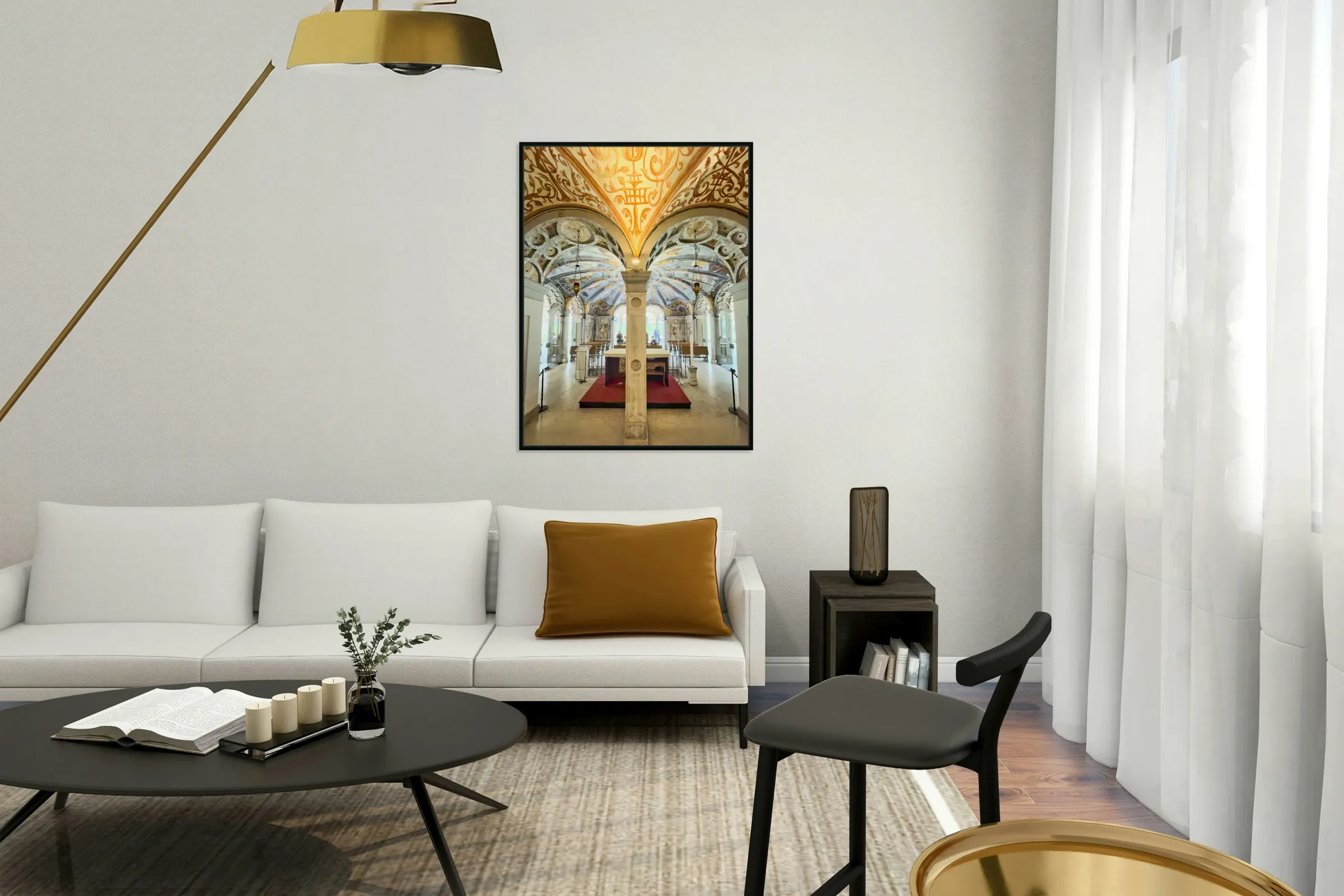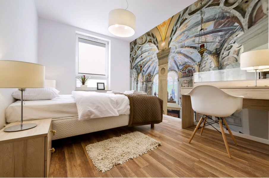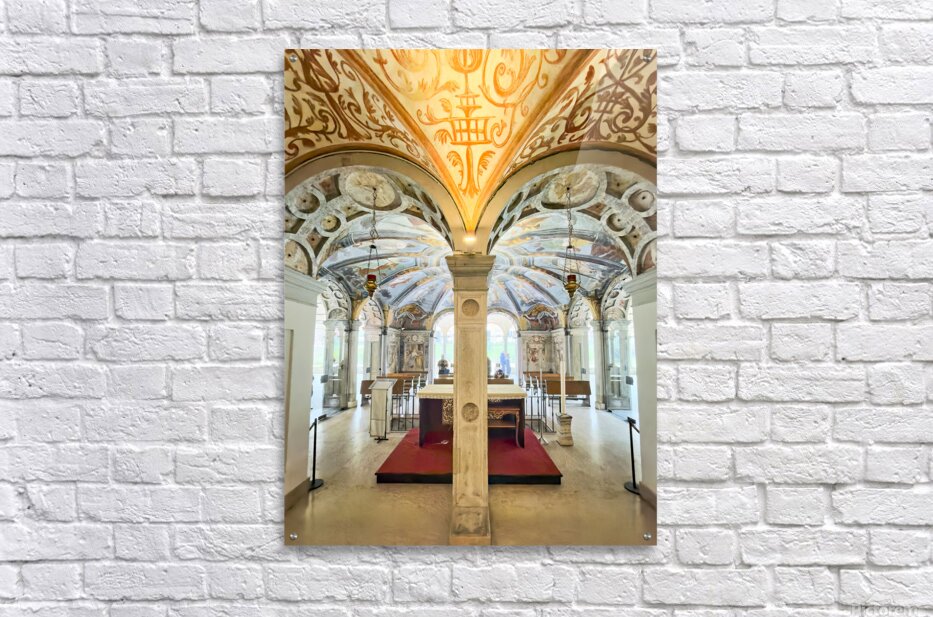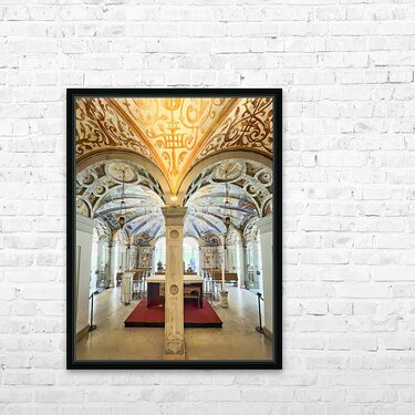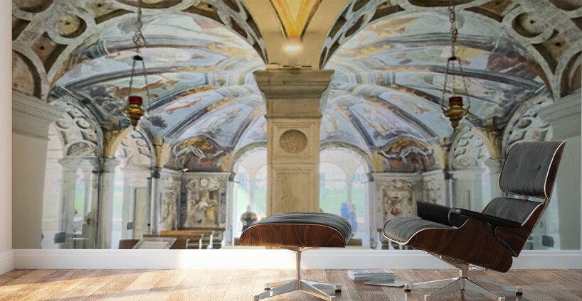 Get this artwork "Interior of Santa Maria alla Fontana church in Milan Italy with ornate frescoes and altar" in a framed print.