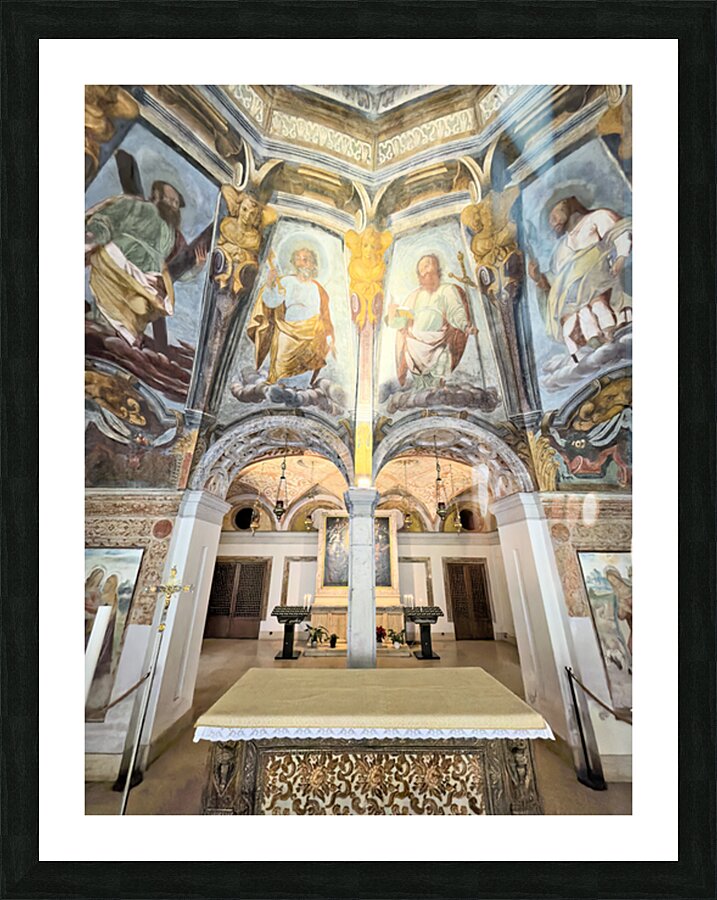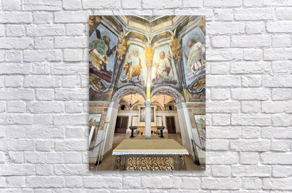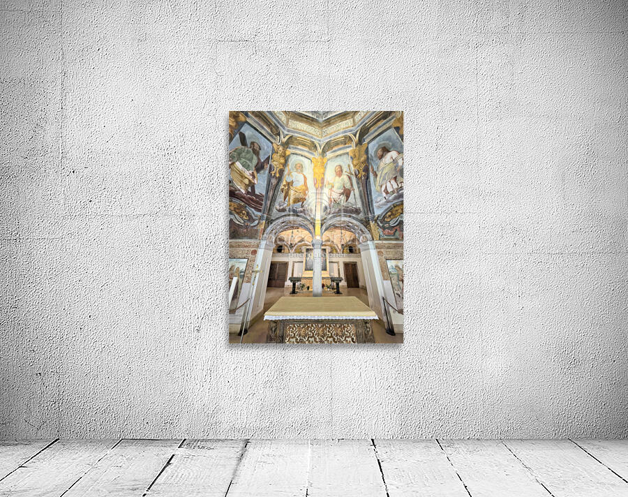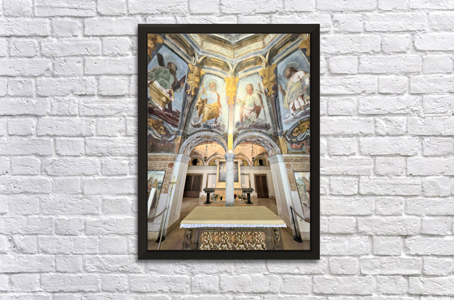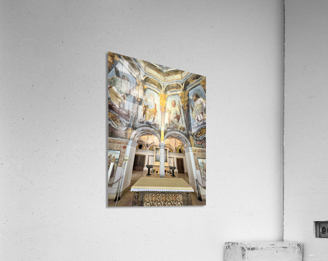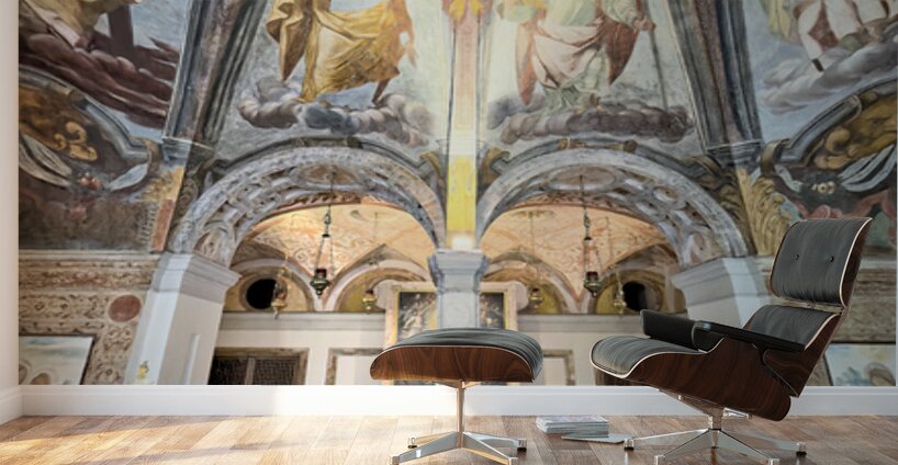Interior of Santa Maria alla Fontana church in Milan Italy with ornate frescoes and altar