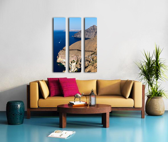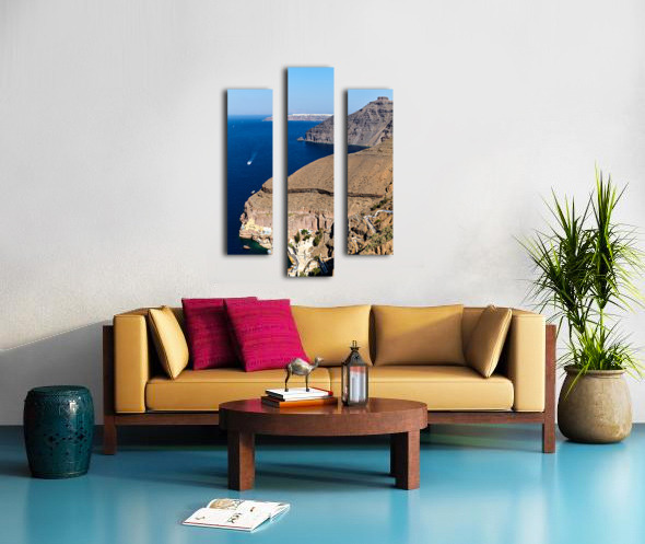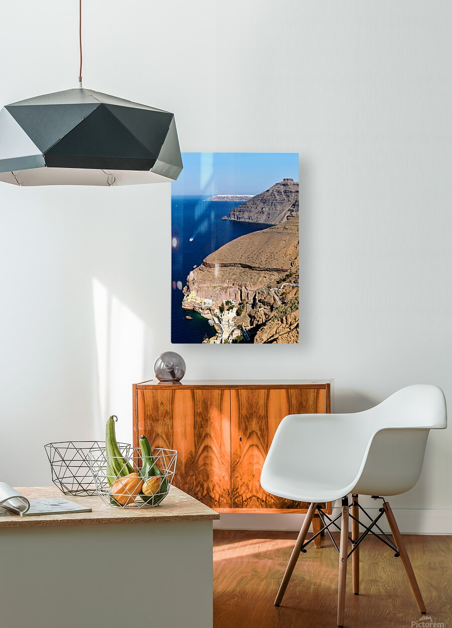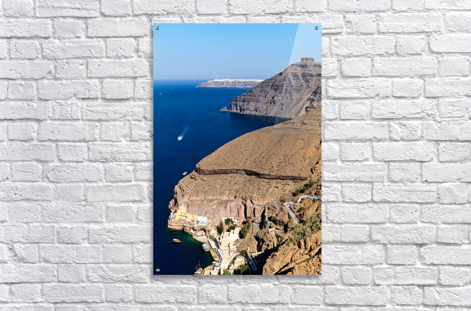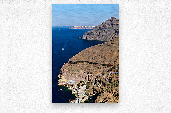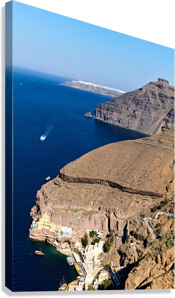 ABOUT THIS ARTWORK: SANTORINI CALDERA WITH CLIFFS DEEP BLUE SEA PORT AND DISTANT