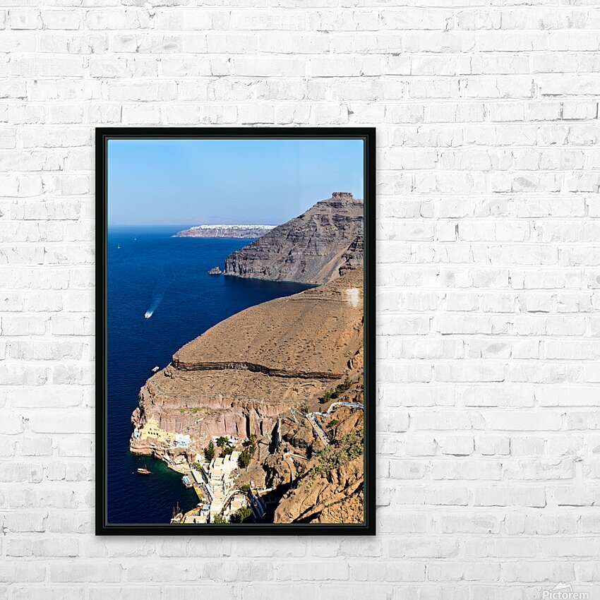 Get this artwork "Santorini caldera with cliffs deep blue sea port and distant " in a framed print.