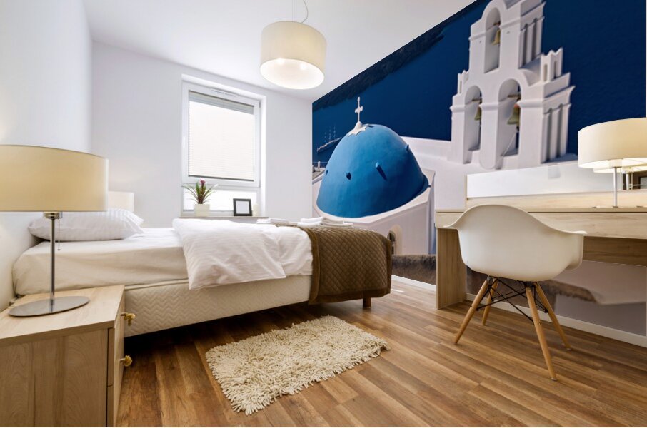 Santorinis iconic blue dome church and caldera seascape. Marco Brivio Puzzle printing