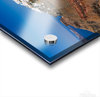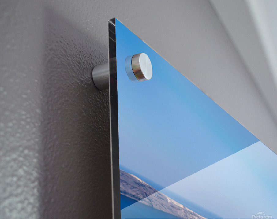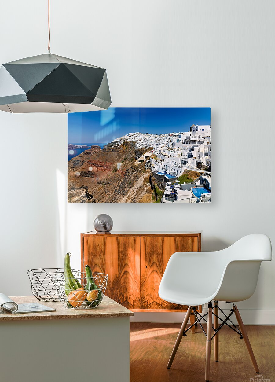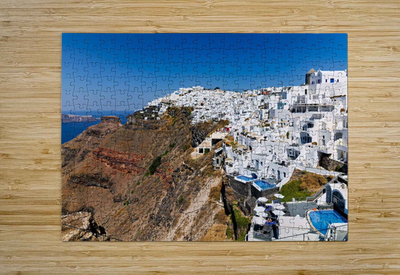 Santorini: White cliffside village blue sea clear sky. Marco Brivio Puzzle printing