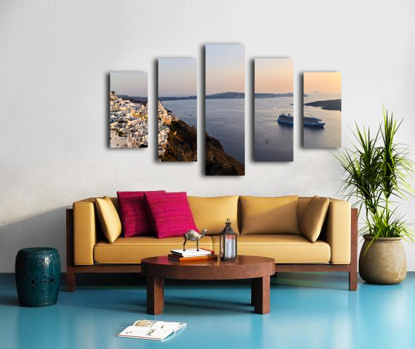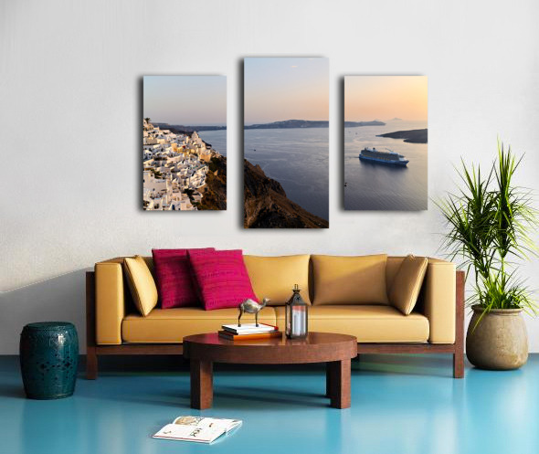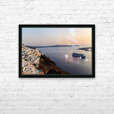Santorini village and cruise ship at sunset. Frame print