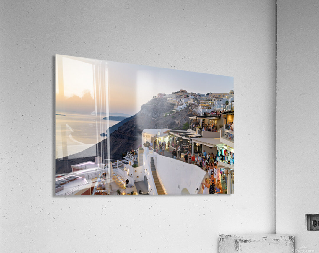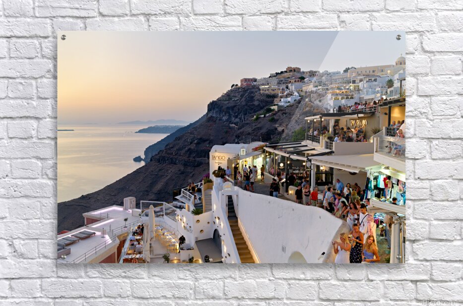 Get this artwork "Santorini cliffside town with restaurants and people enjoying th" in a framed print.