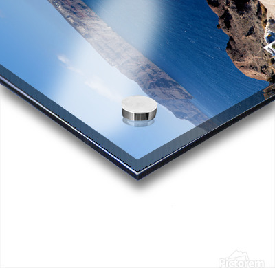 Iconic Santorini bell tower overlooking the caldera and Aegean S Picture Frame Printing