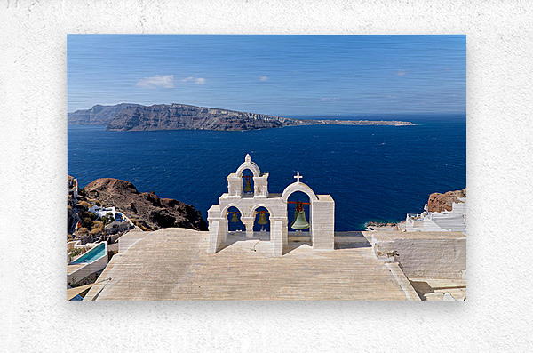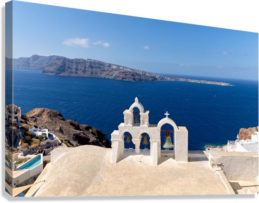 ABOUT THIS ARTWORK: ICONIC SANTORINI BELL TOWER OVERLOOKING THE CALDERA AND AEGEAN S