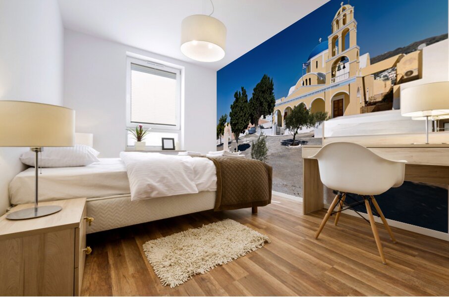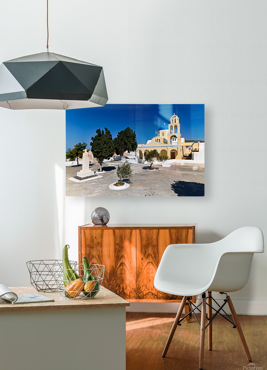 ABOUT THIS ARTWORK: TRADITIONAL GREEK CHURCH BLUE DOME BELL TOWER SUNNY DAY.