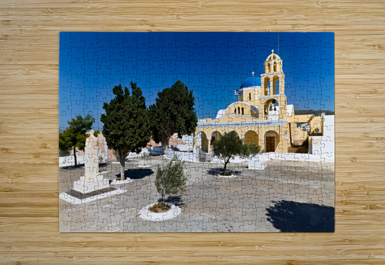 Traditional Greek church blue dome bell tower sunny day. Marco Brivio Puzzle printing