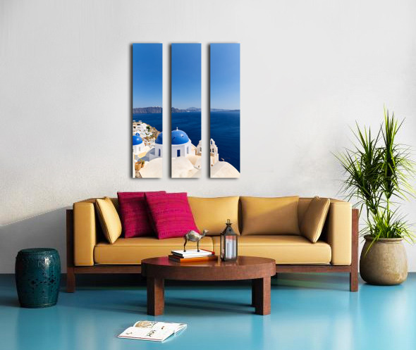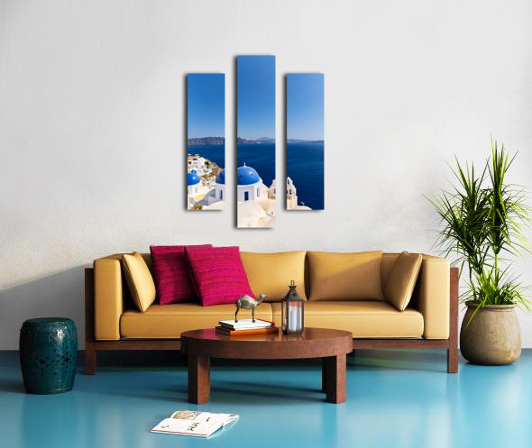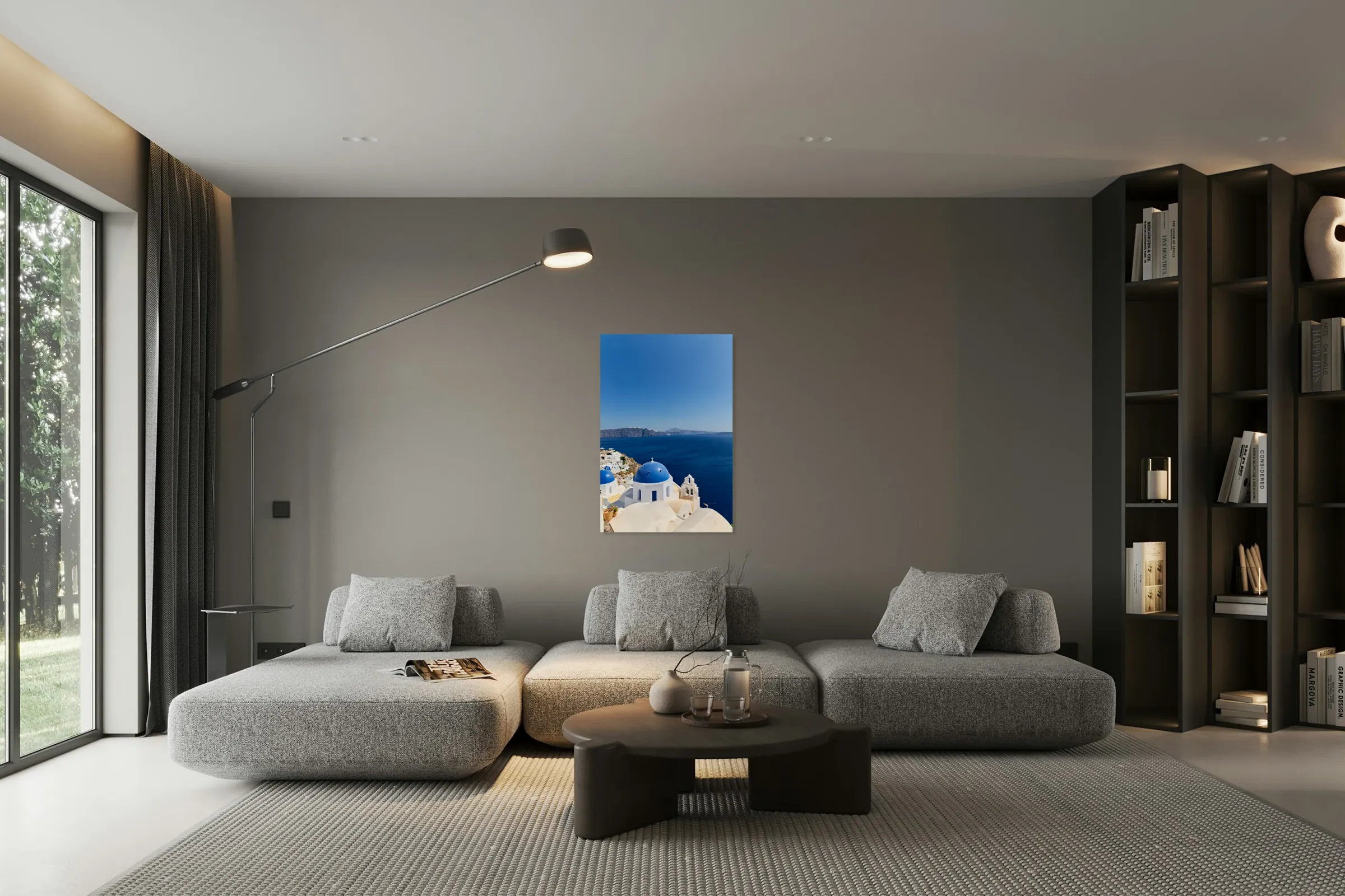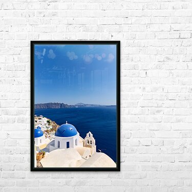 Iconic blue domes and white architecture of Santorini Greece. Frame print