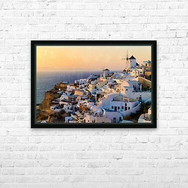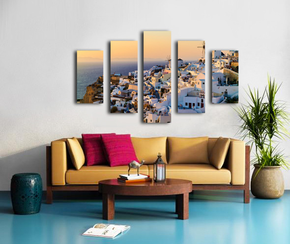 Santorini village at sunset with windmills overlooking the Aegea Frame print