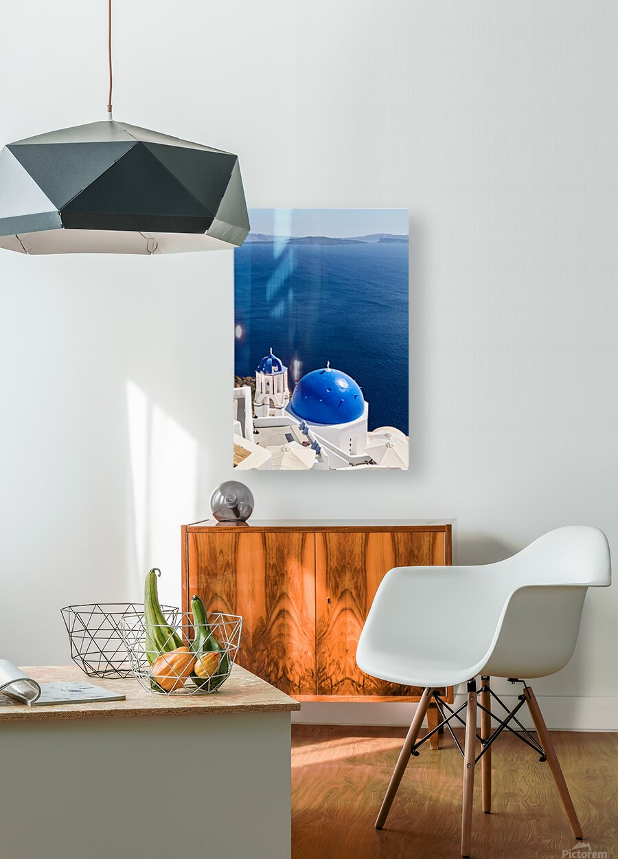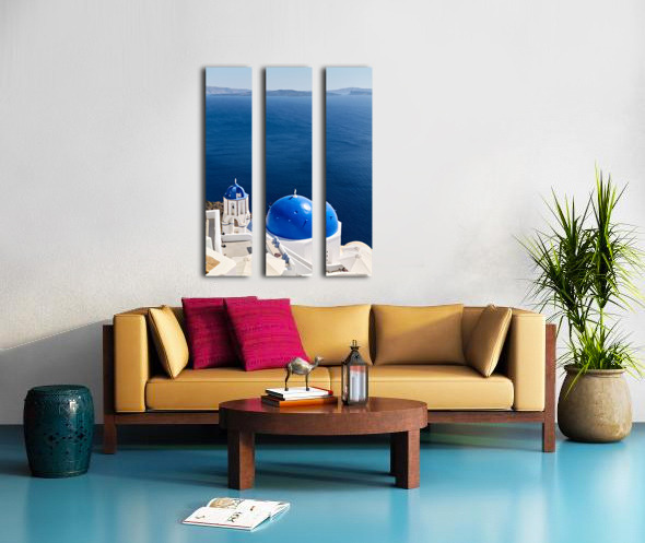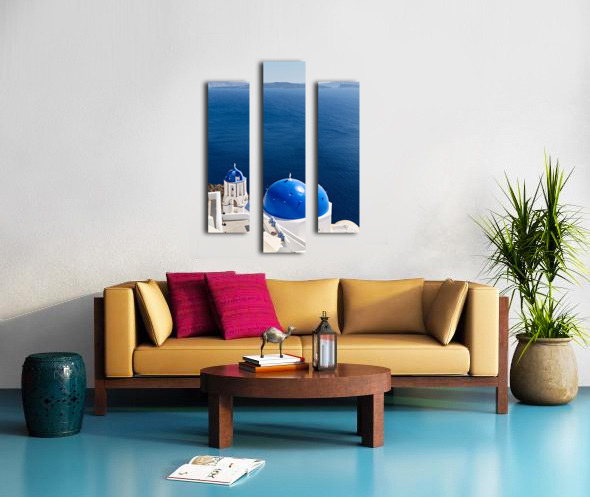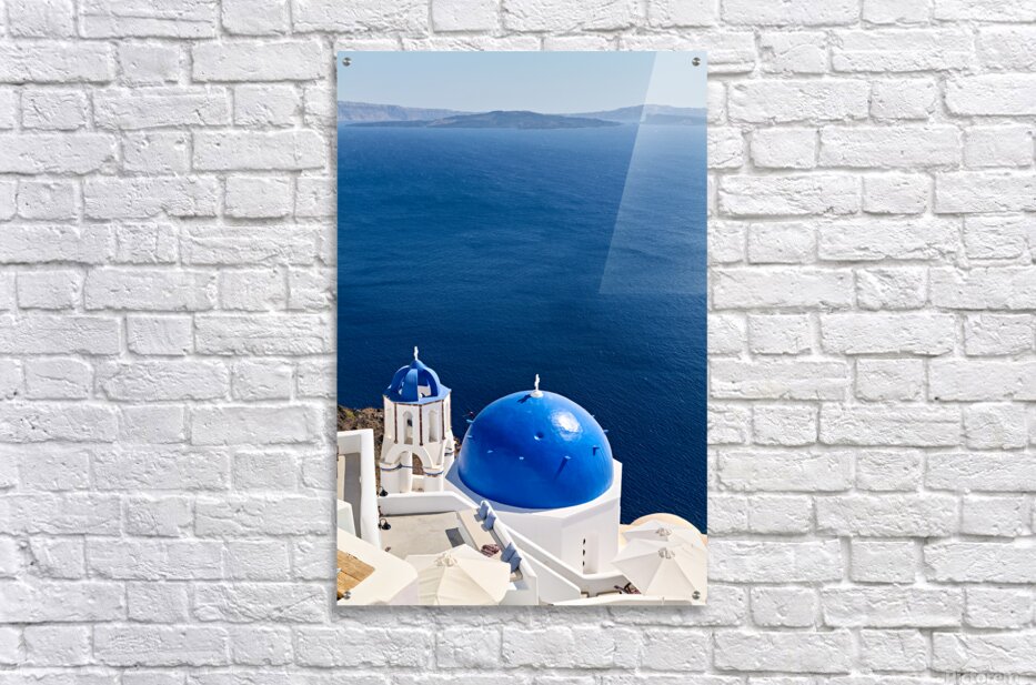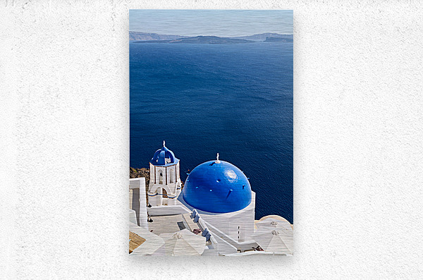 ABOUT THIS ARTWORK: SANTORINIS BLUE DOMES AND CALDERA VIEW.