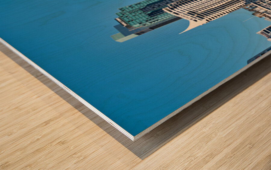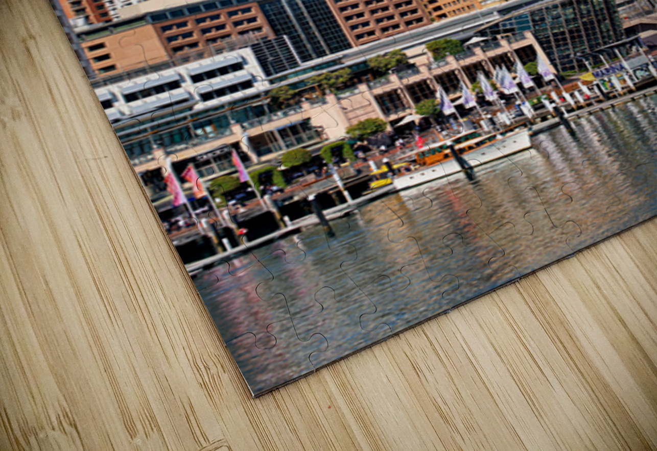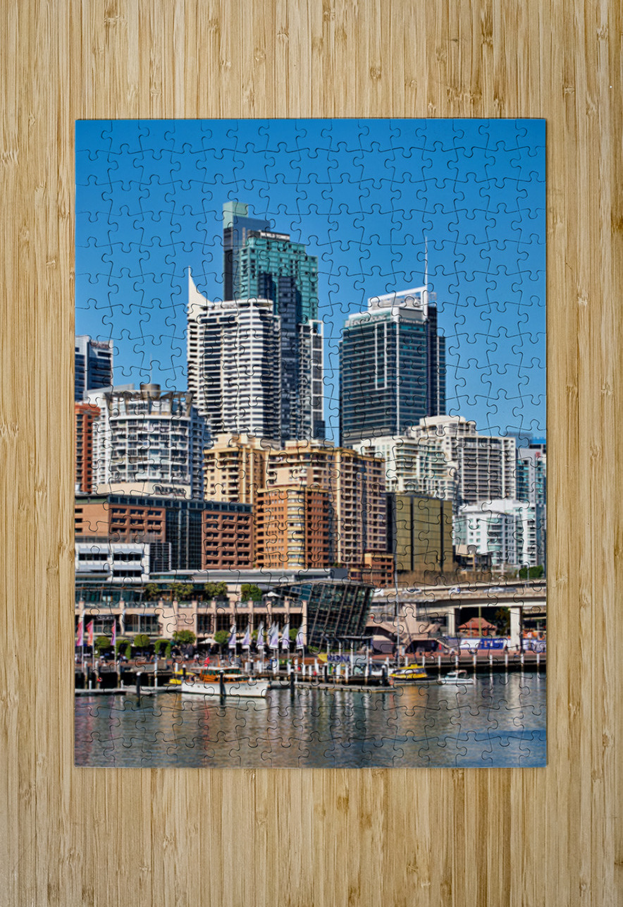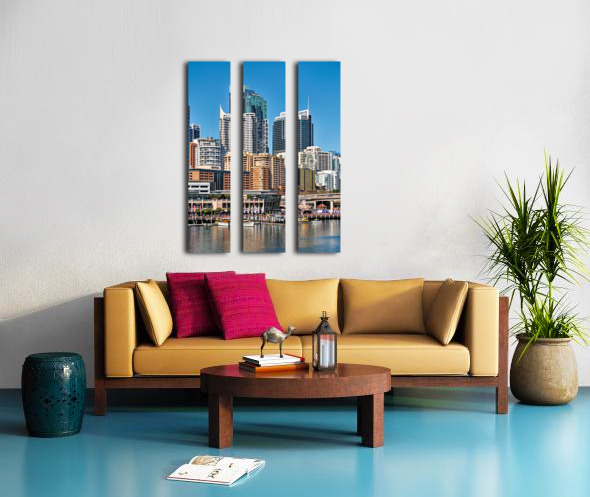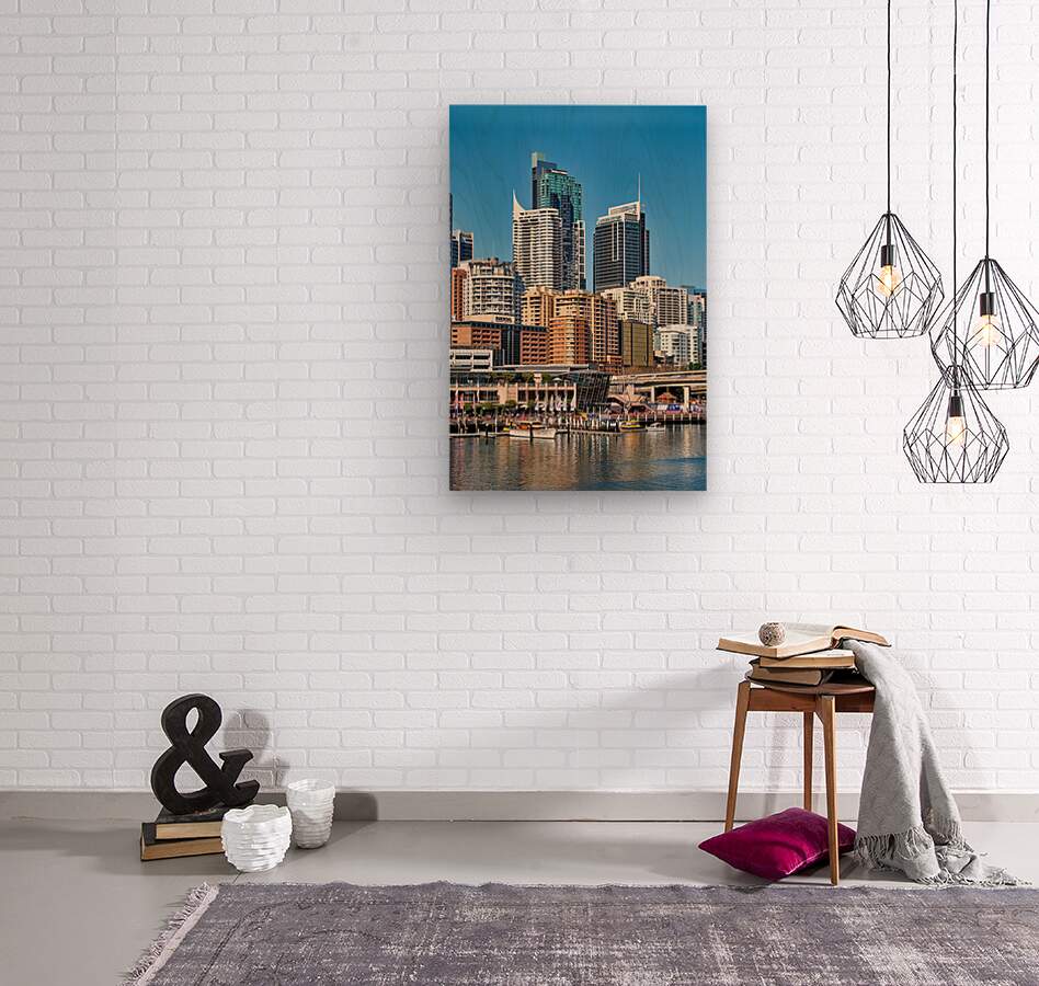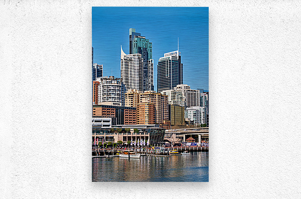 "Sydney skyline with Darling Harbour and boats." in a framed print.