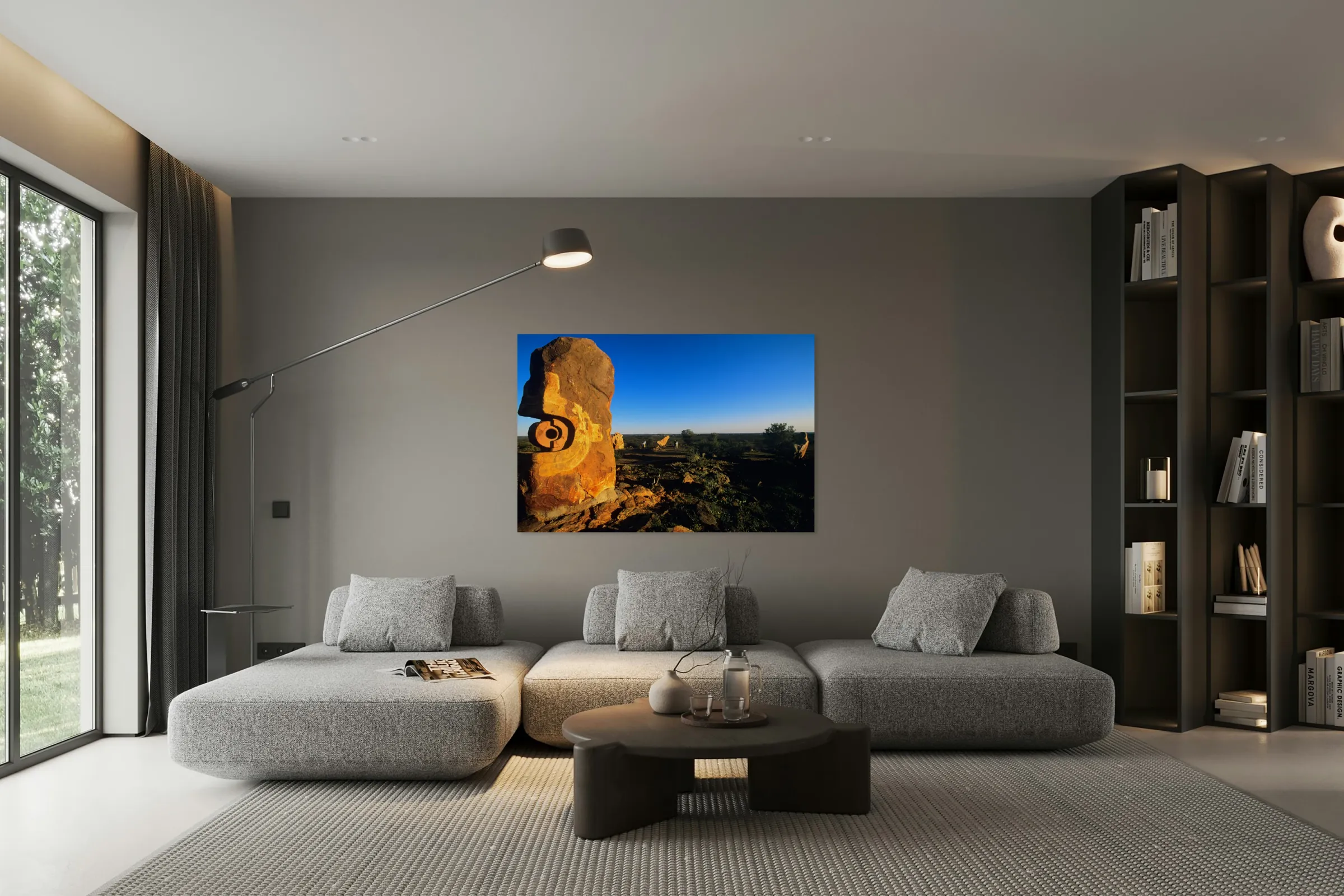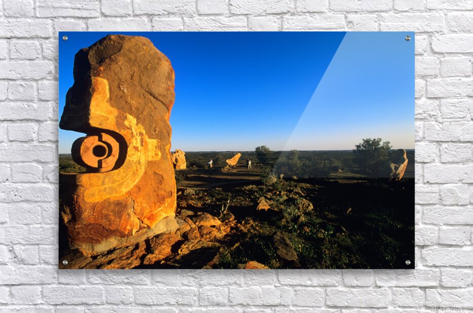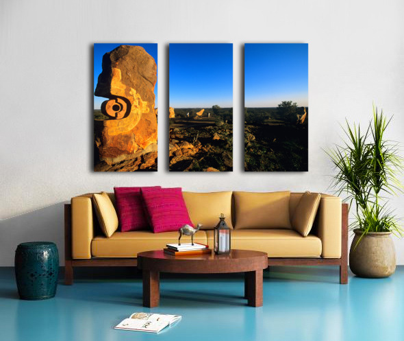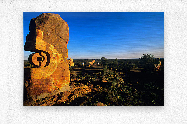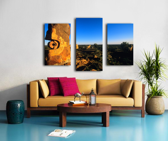 ABOUT THIS ARTWORK: SANDSTONE SCULPTURES GLOW AT SUNSET IN THE AUSTRALIAN OUTBACK.