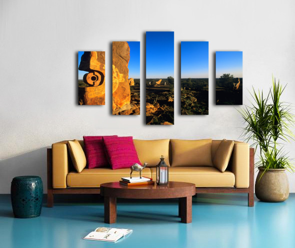 Sandstone sculptures glow at sunset in the Australian outback. Frame print