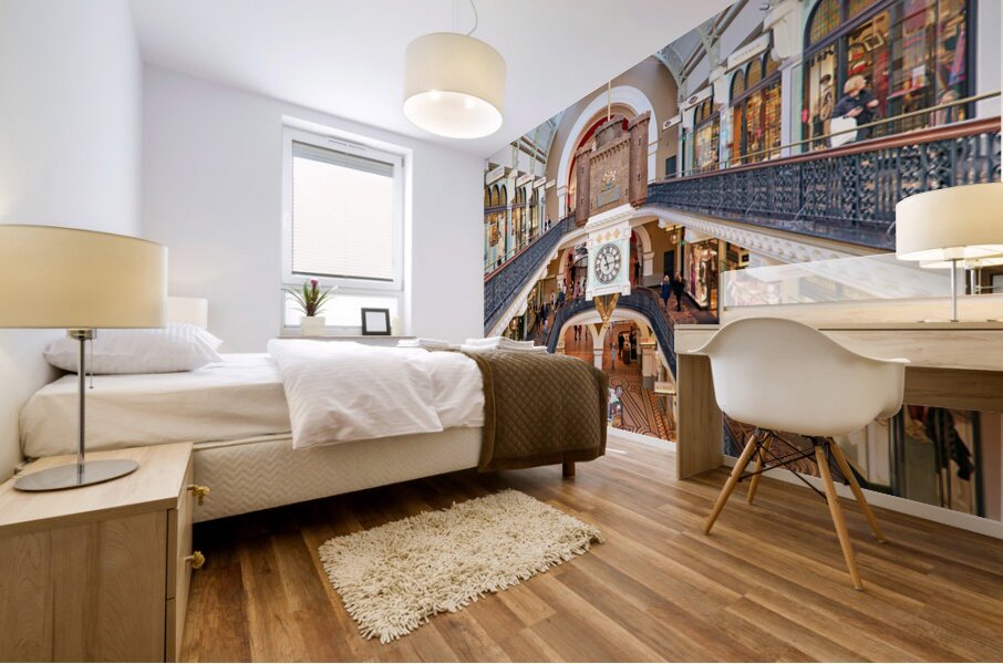 Elegant Victorian shopping arcade with clock tower and shoppers. Marco Brivio Puzzle printing