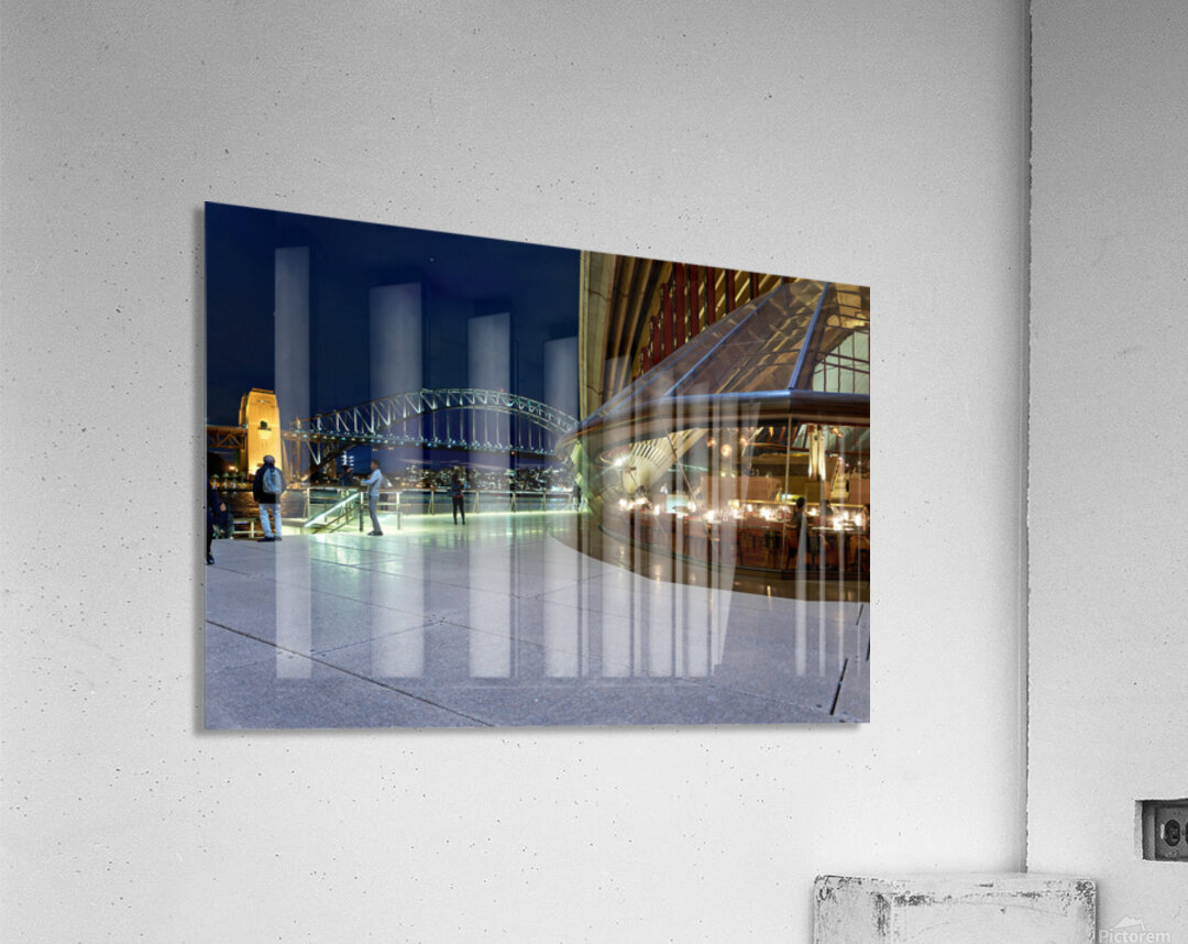 Get this artwork "Sydney Opera House and Harbour Bridge at night." in a framed print.