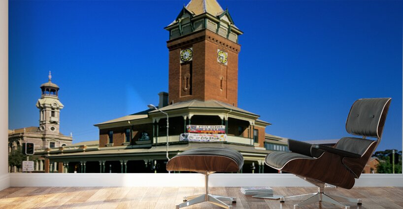 The historic Broken Hill Post Office with its prominent clock tower stands on a street corner in Broken Hill New South Wales Australia.