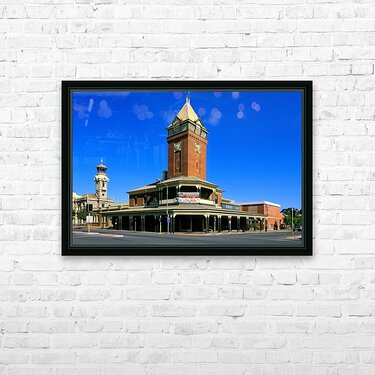 "The historic Post Office building in Broken Hill Australia." in a framed print.