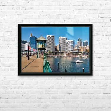 Sydney Harbour with boats and buildings on a sunny day. Picture Frame Printing
