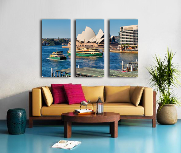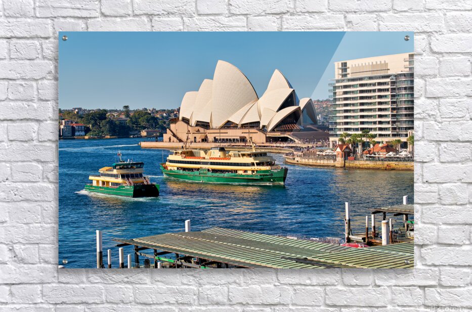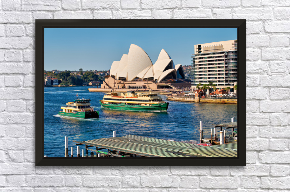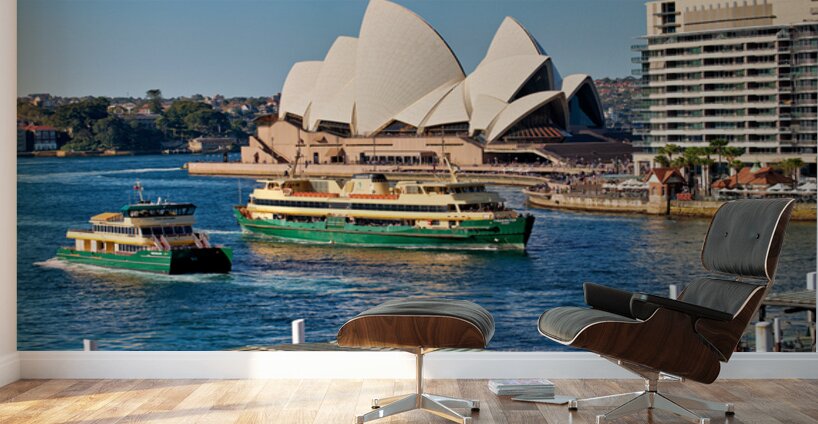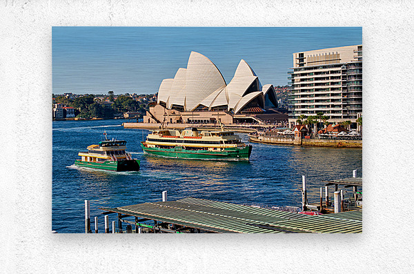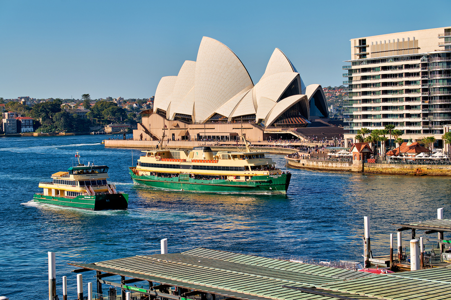 Sydney Australia - Ferries navigate the harbor past the iconic Opera House a common sight for commuters and tourists.